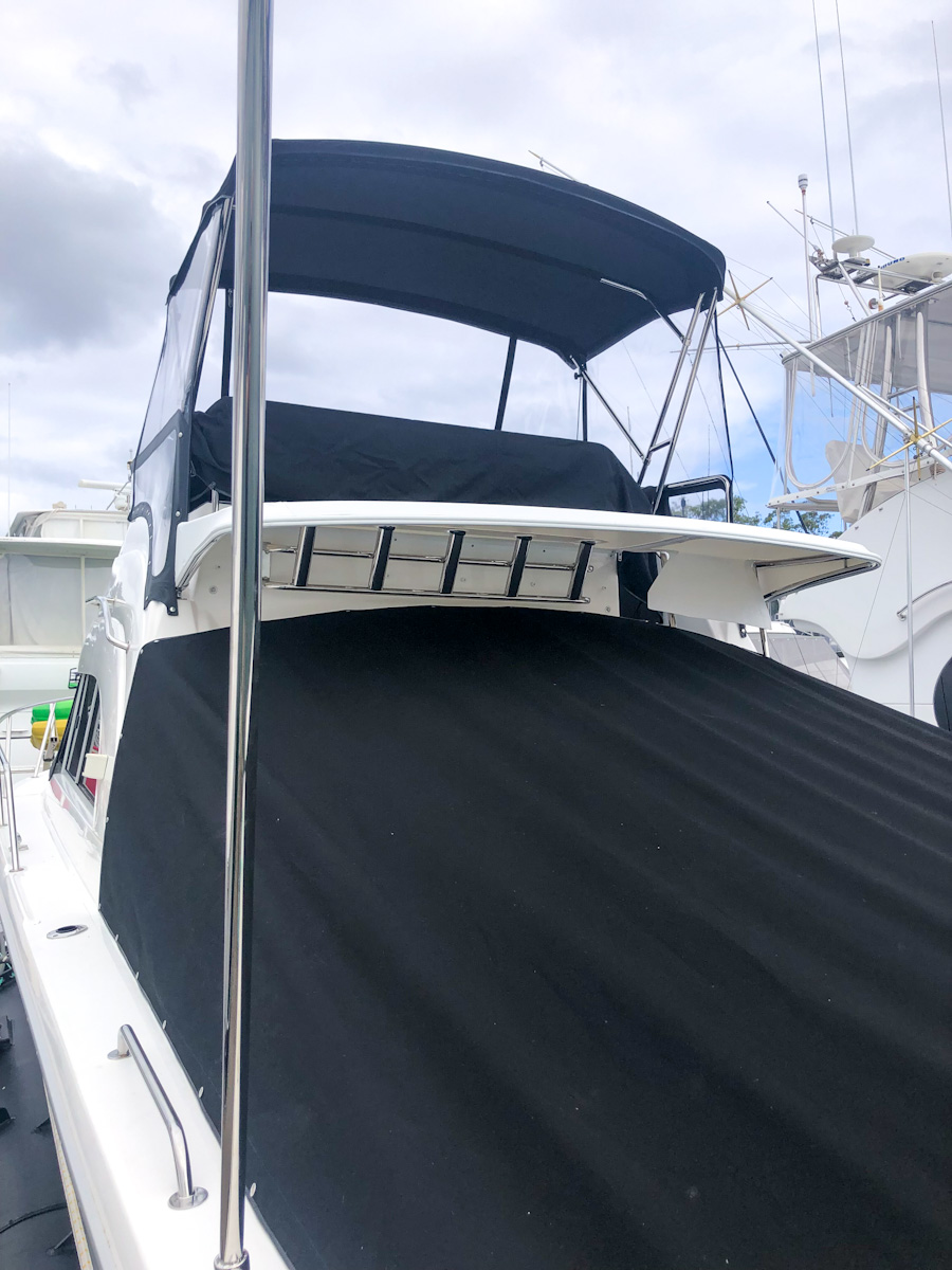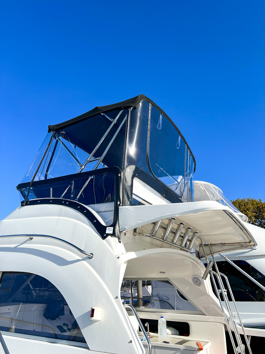 Martini has never been antifouled and is in “like-new” condition. It features modern Garmin electronics, onboard power including chargers, flybridge covers, a rear awning with an extension to provide shade across the entire cockpit, and a four-step ladder to the marlin board for easy access.