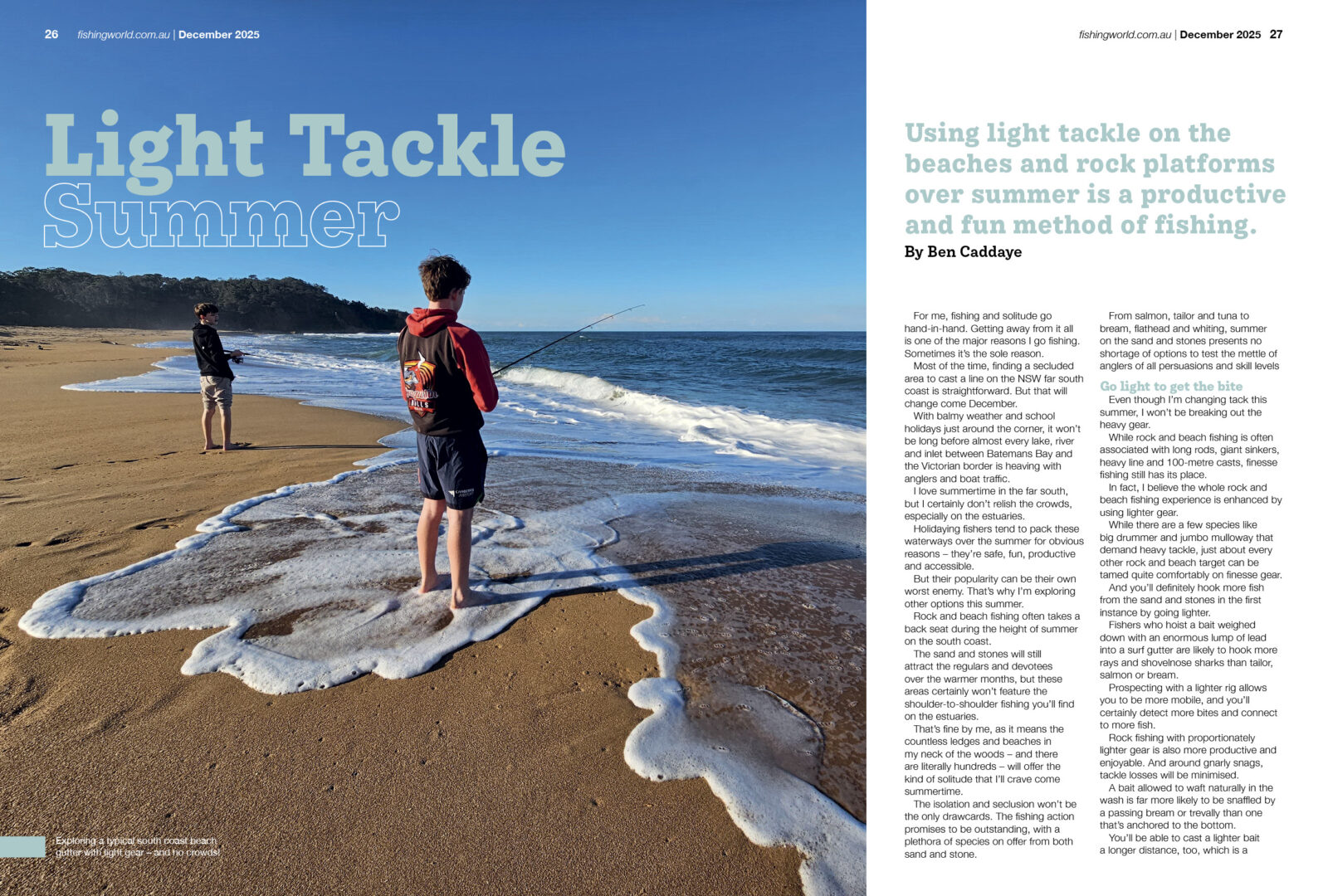 Using light tackle on the beaches and rock platforms over summer is a productive and fun method of fishing.