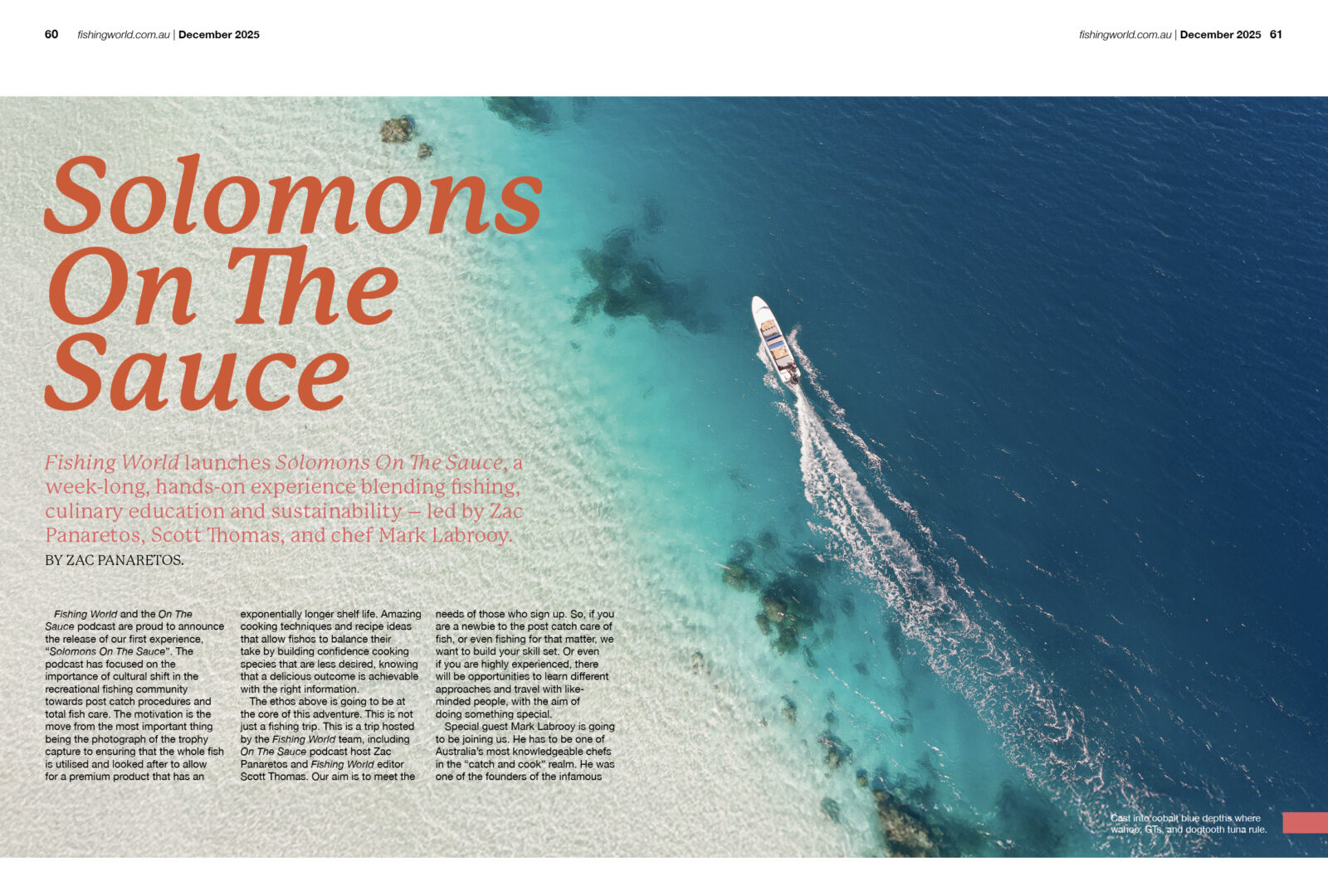 Fishing World launches Solomons On The Sauce, a week-long, hands-on experience blending fishing, culinary education and sustainability – led by Zac Panaretos, Scott Thomas, and chef Mark Labrooy.