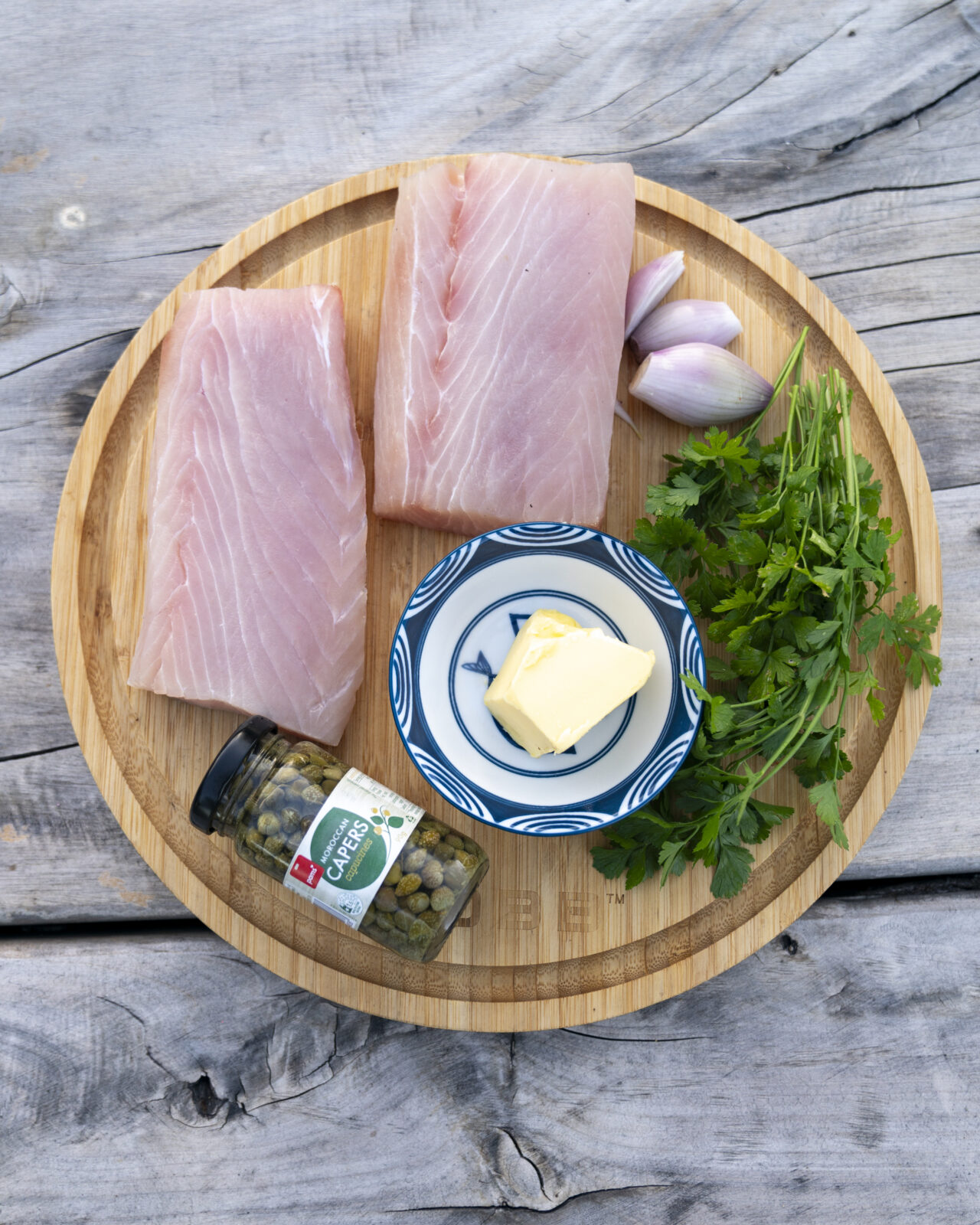 PICCATA is a classic  zesty Italian sauce featuring lemon, butter and capers typically used on chicken or veal – but it goes awesome on fish too! This is a super quick and easy fish steak dish. We used kingfish fillets, but you can use any fillets you have on hand.