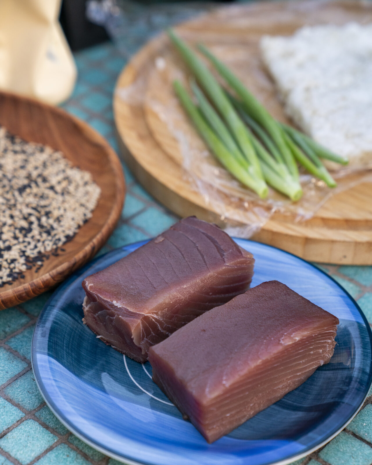 • For the cleanest cut, use a very sharp knife and slice the tuna against the grain. Slice the tuna as thin as possible